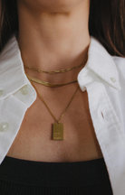Love this necklace!! You can wear it loose or more tight! I have worn it in the water with zero damage or tarnish 💖
