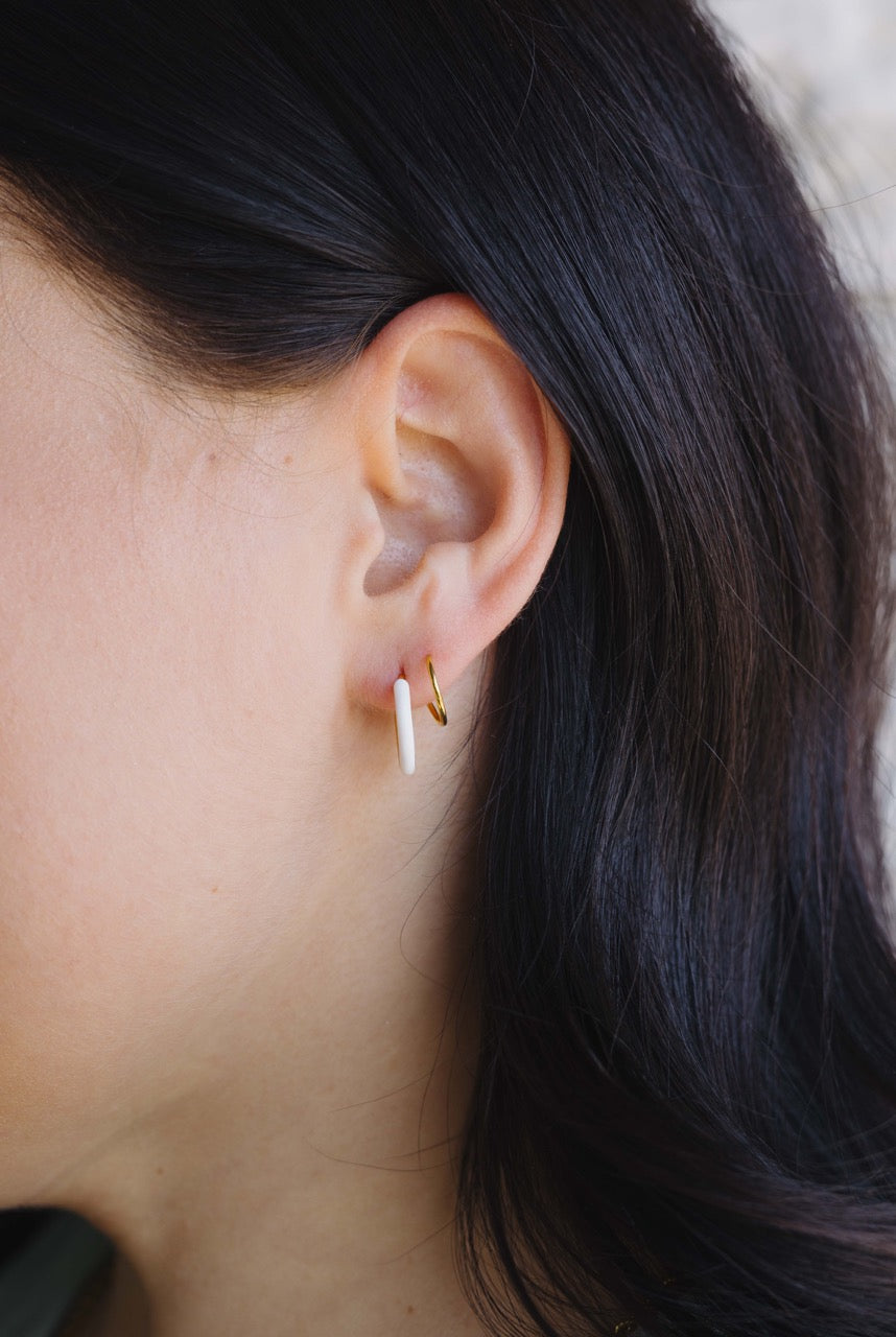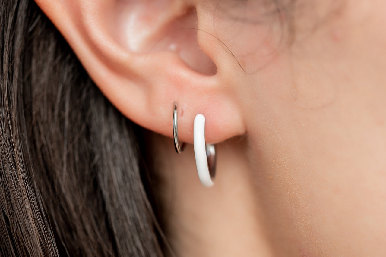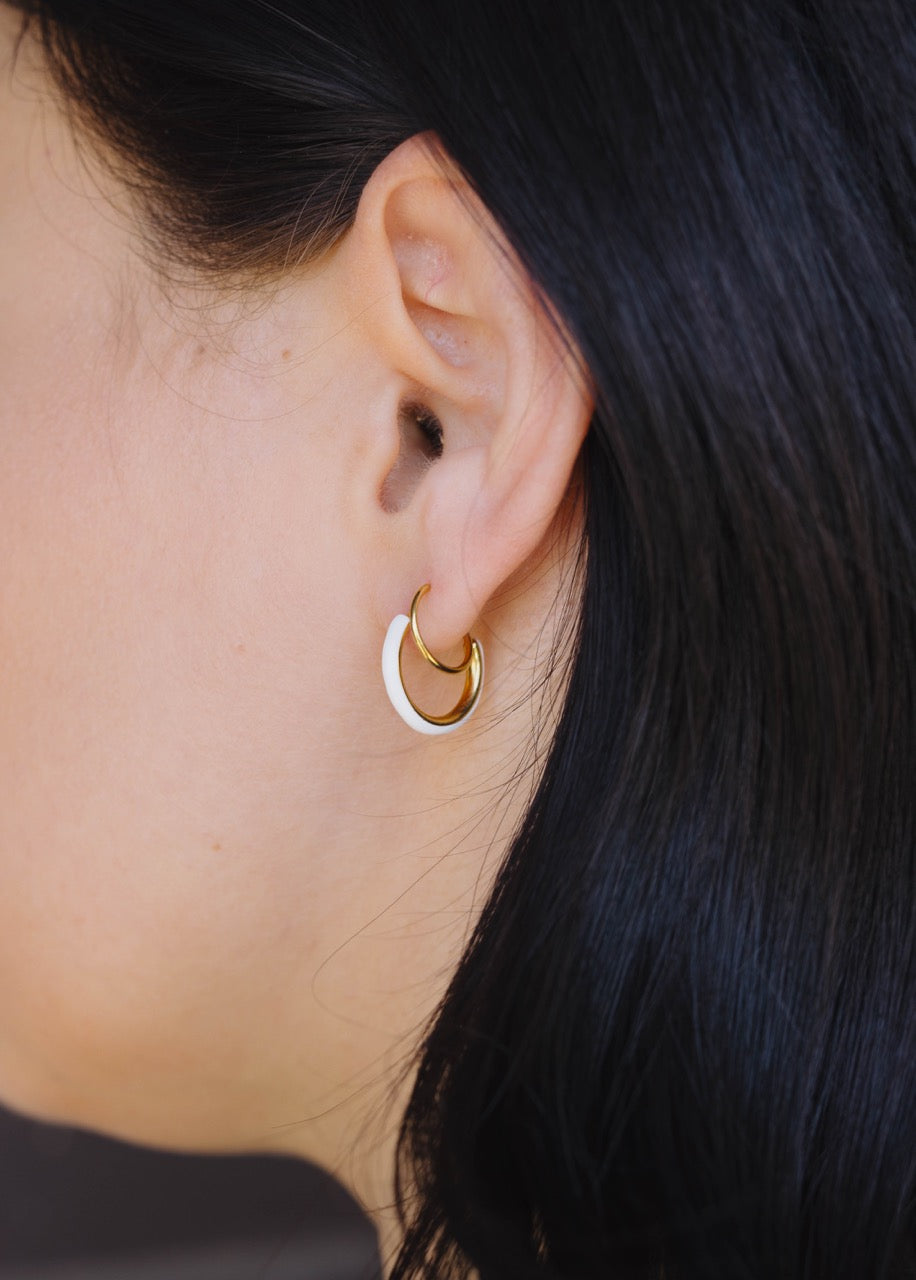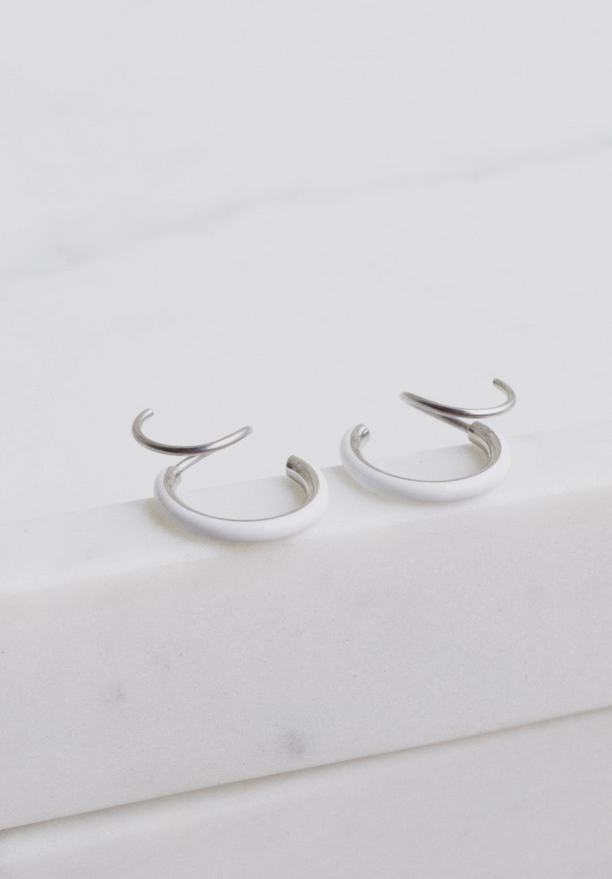 White Enamel Double Twist Hoops