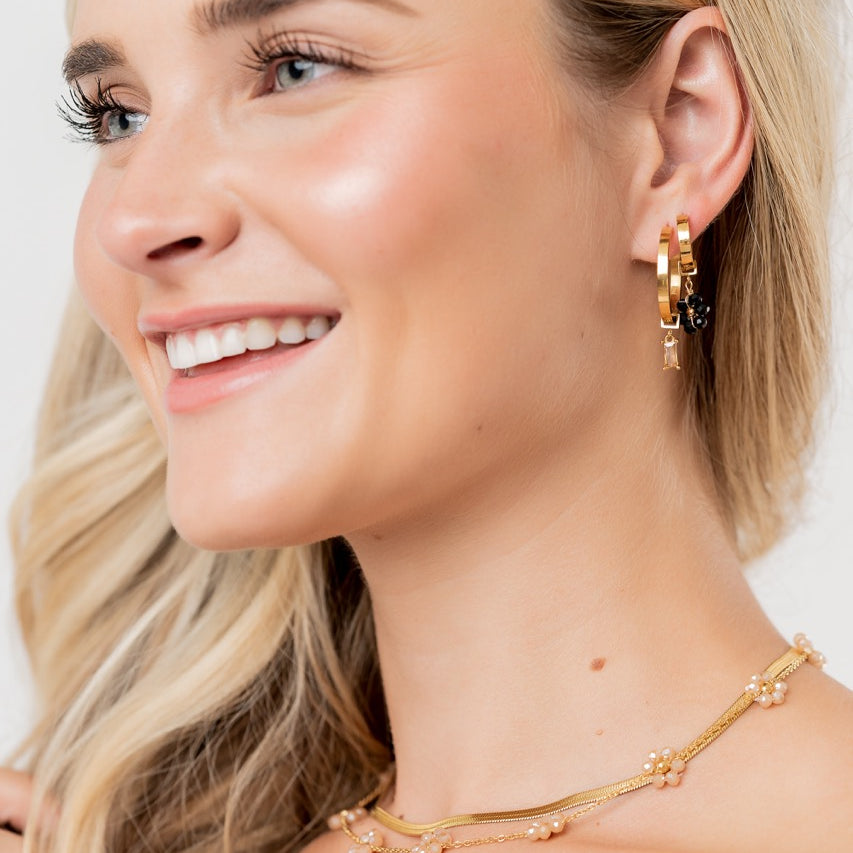 Zaana charms fit on all three size hoops we have! They are easy to change and let you switch up your style everyday!