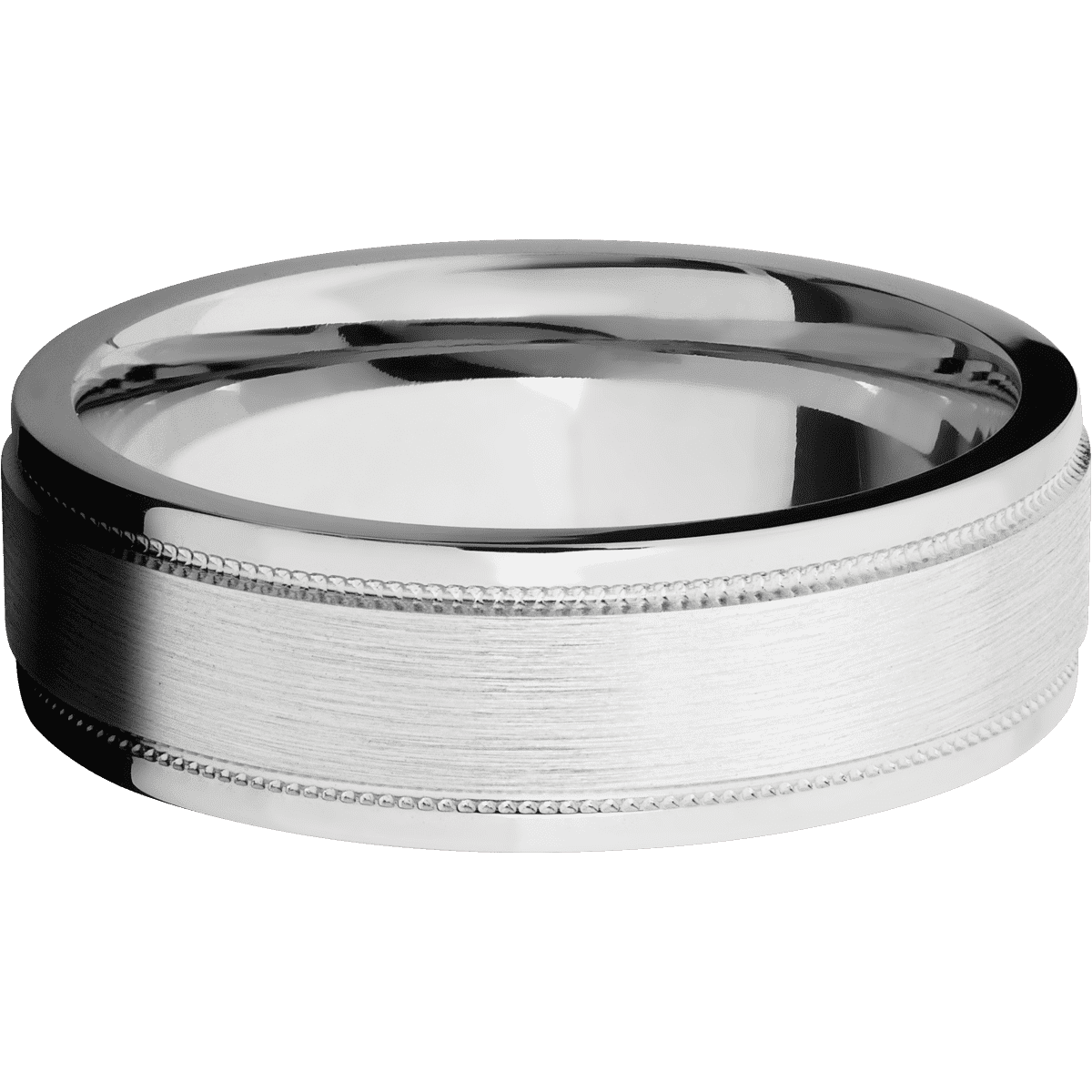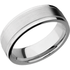 7 mm wide Flat Stepped Edges Milgrain 14K White Gold band.