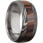 9 mm wide/Domed/Damascus band with one 4 mm Centered inlay of Cocobolo.