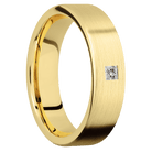 6 mm wide/Flat/14K Yellow Gold band with an arrangement of 1, .1 carat Princess Diamond stones in a Flush setting. - TCW 0.1ct.