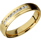 5 mm wide/Flat Grooved Edges/14K Yellow Gold band with an arrangement of 9, .03 carat Round Diamond stones in a Channel setting. - TCW 0.27ct.