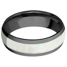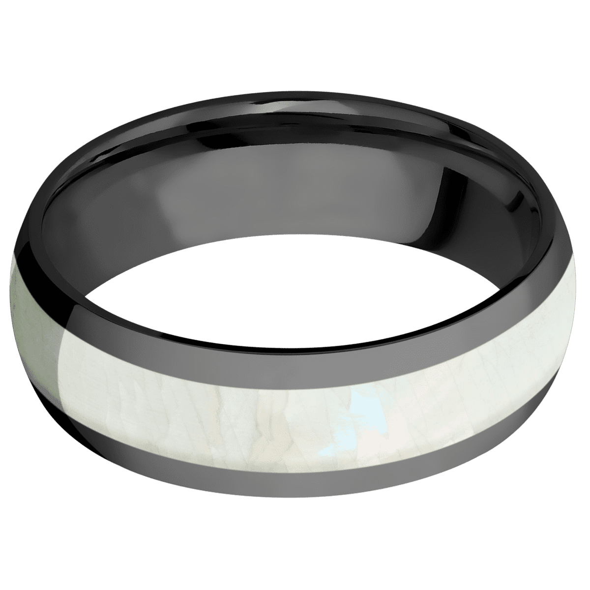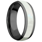 7 mm wide/Domed/Zirconium band with one 4 mm Centered inlay of Freshwater Mother of Pearl.