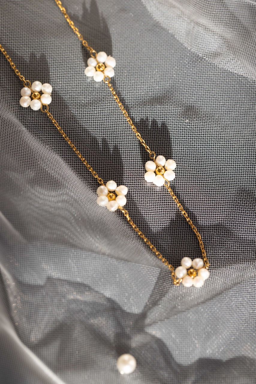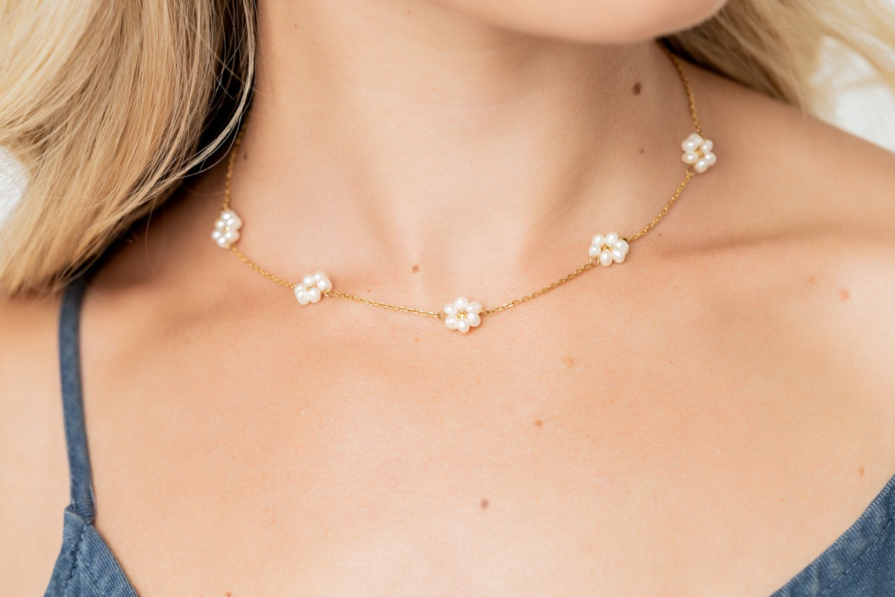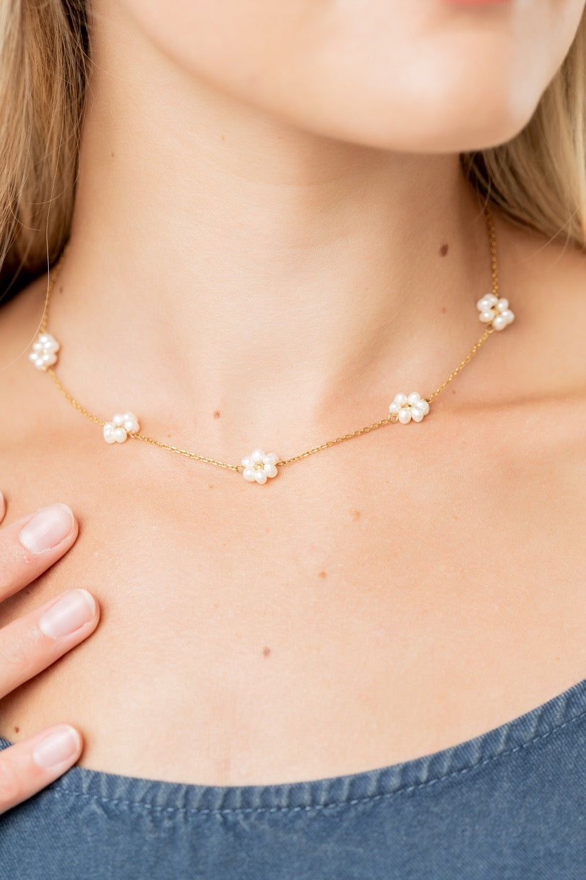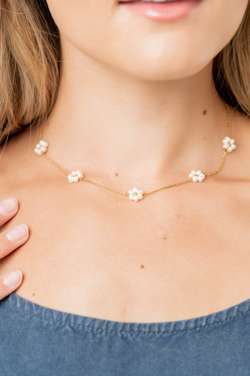 Sandy Pearl Flower Necklace - Summer Pretty Necklace