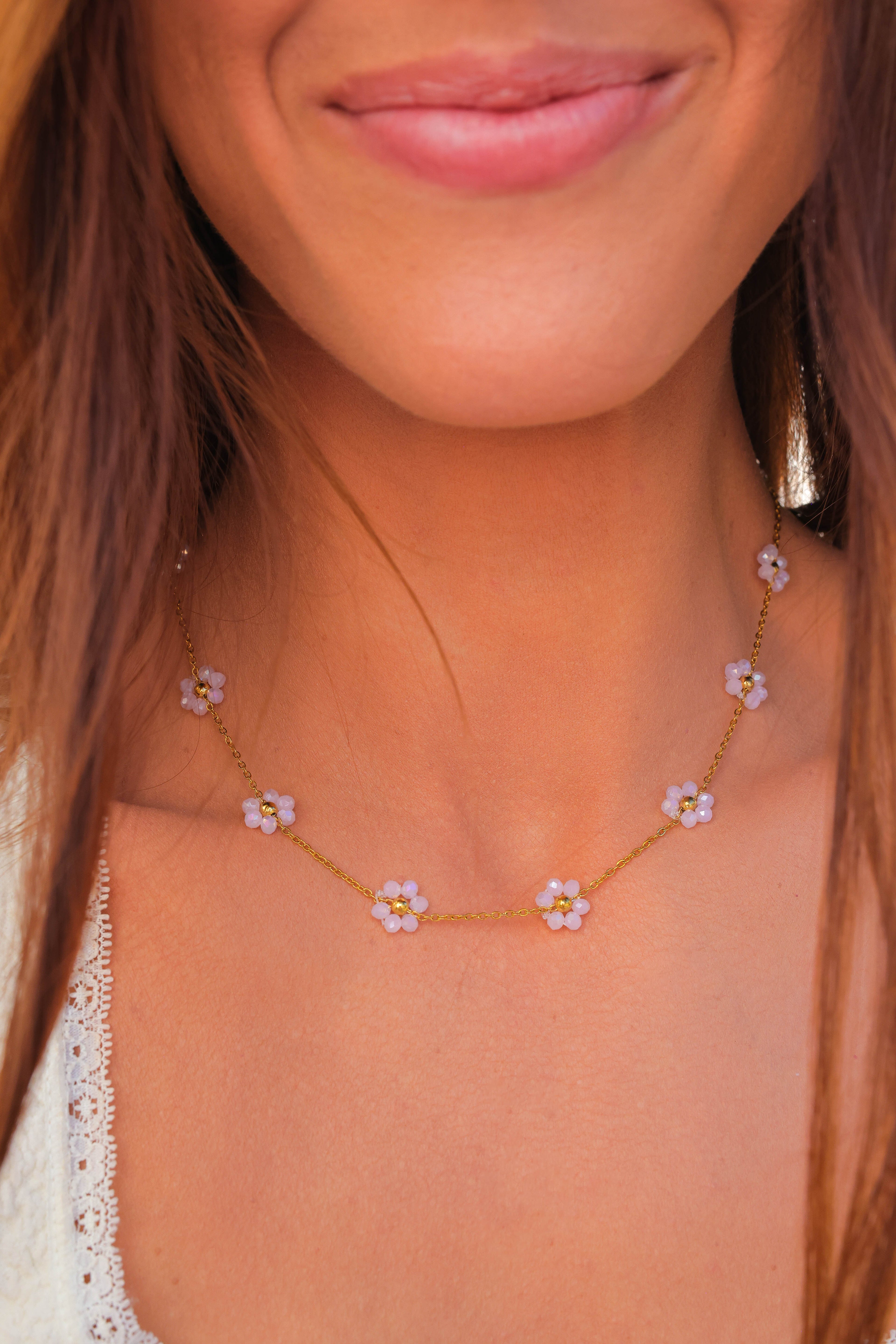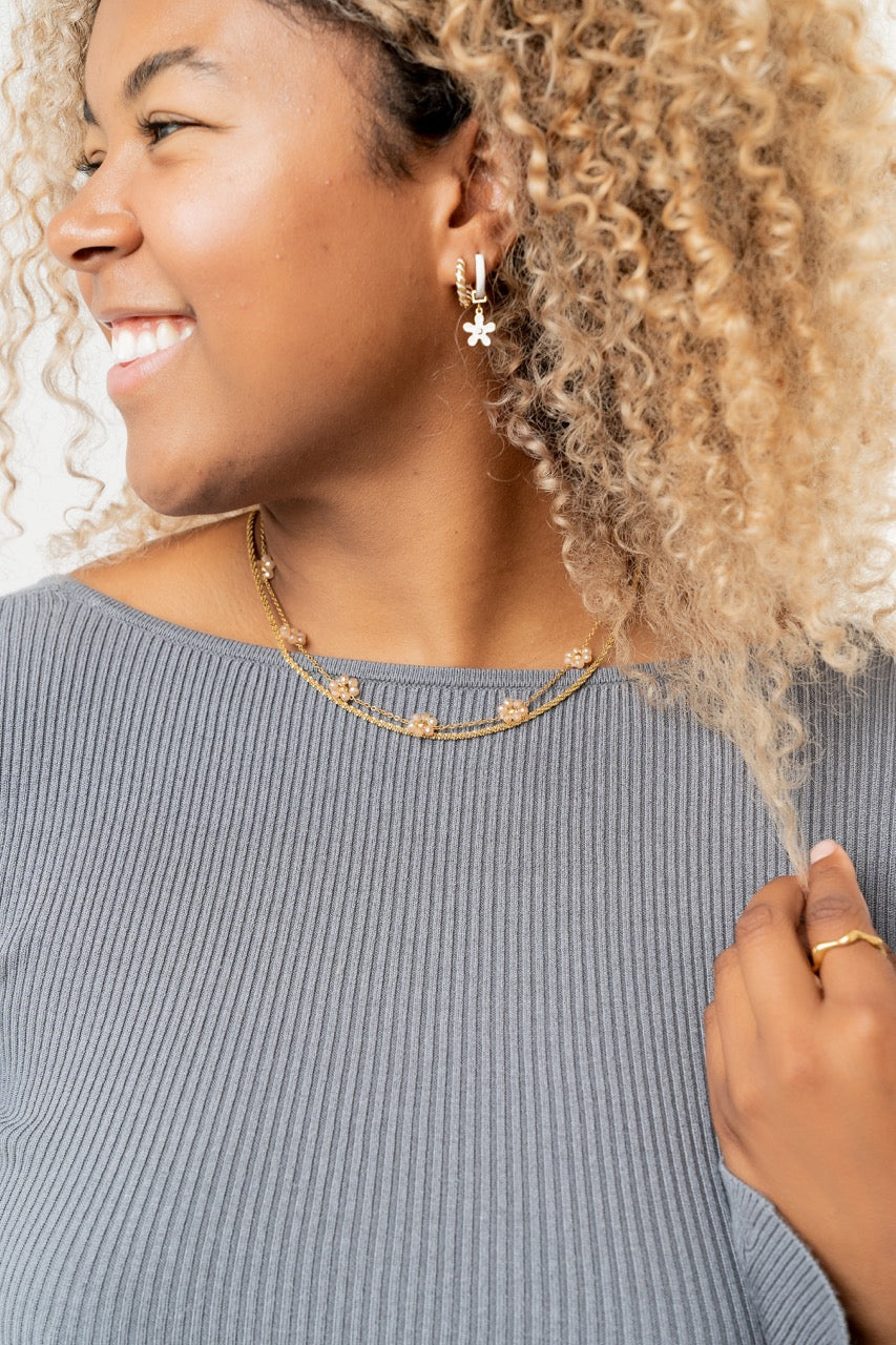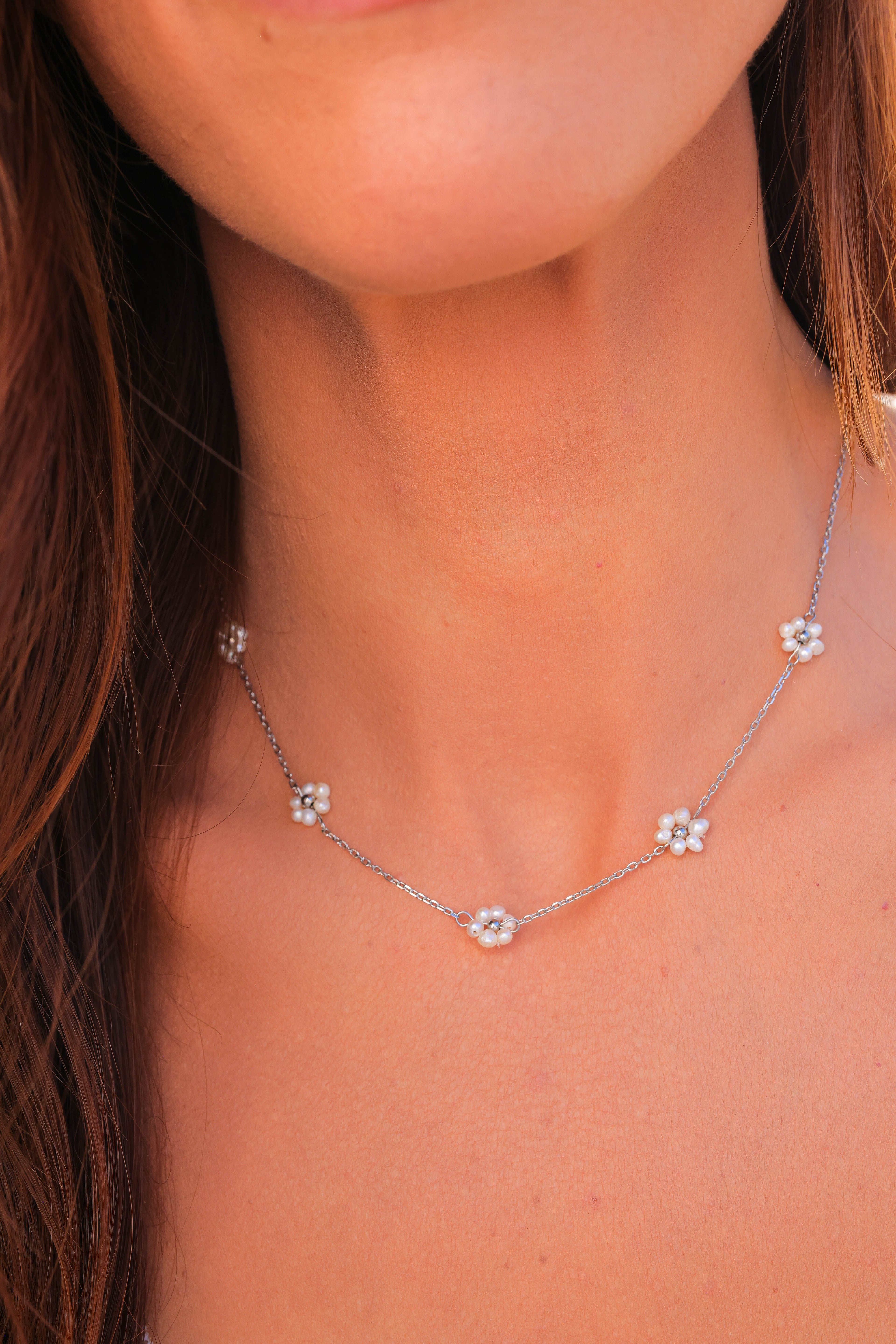 Sandy Pearl Flower Necklace - Summer Pretty Necklace