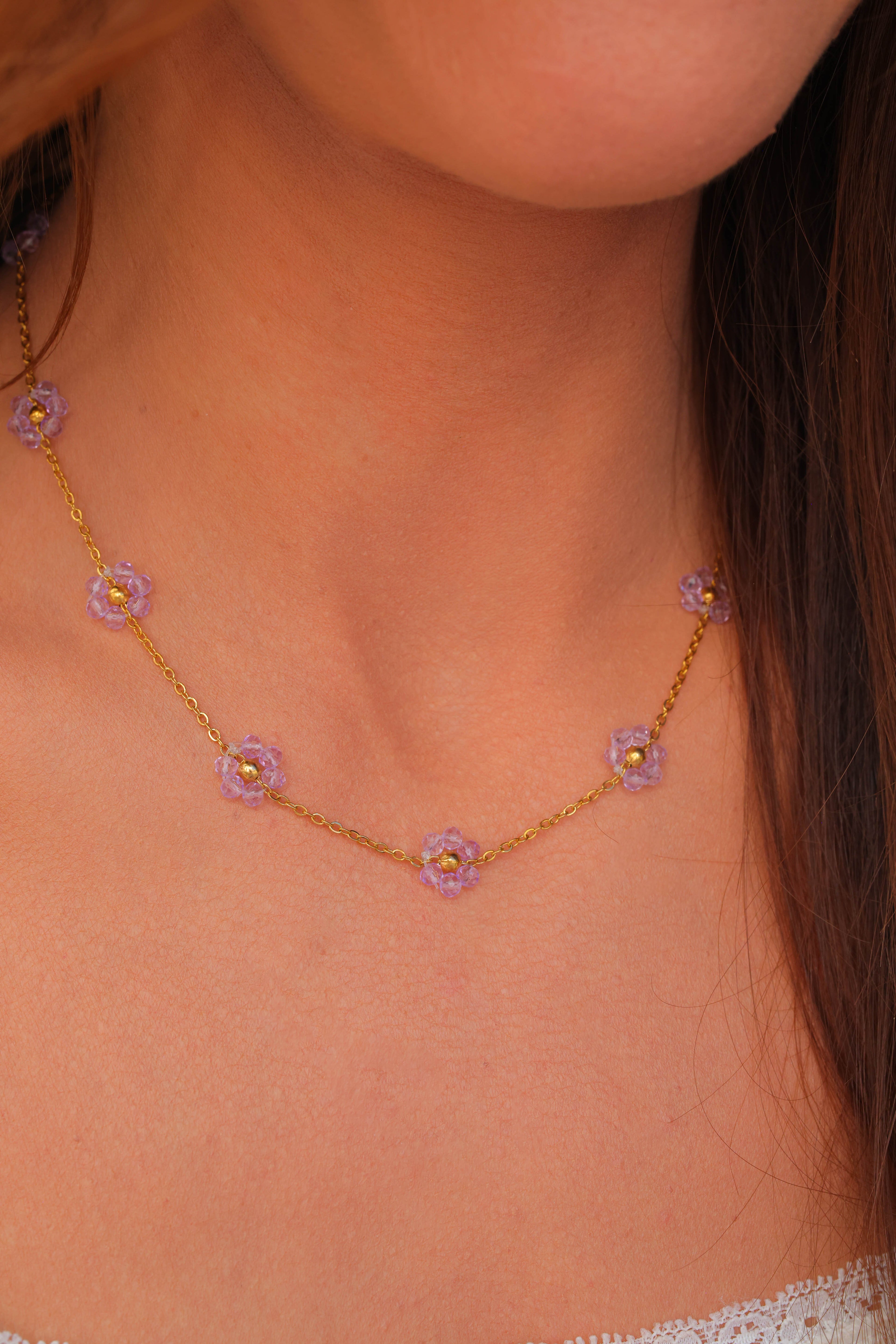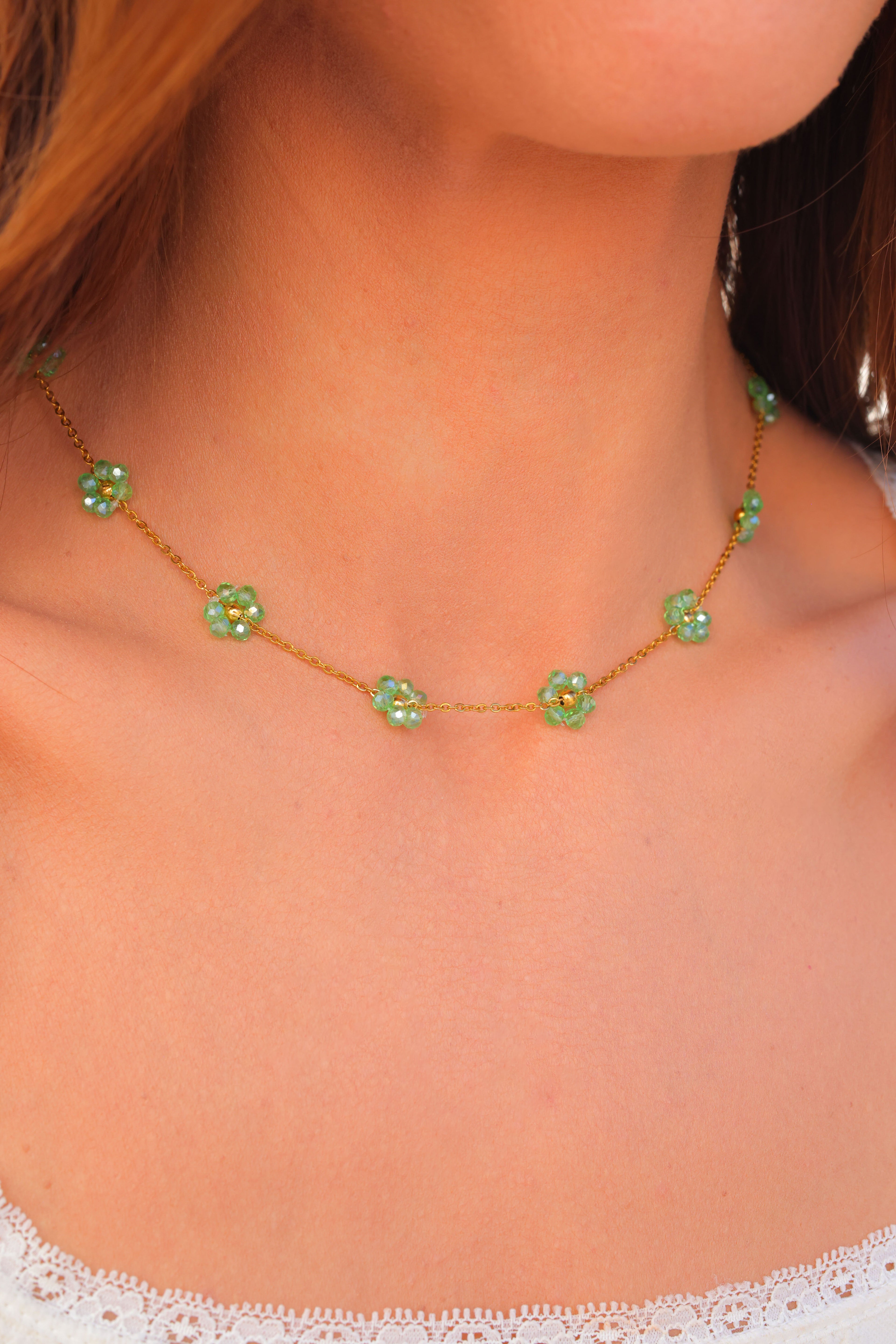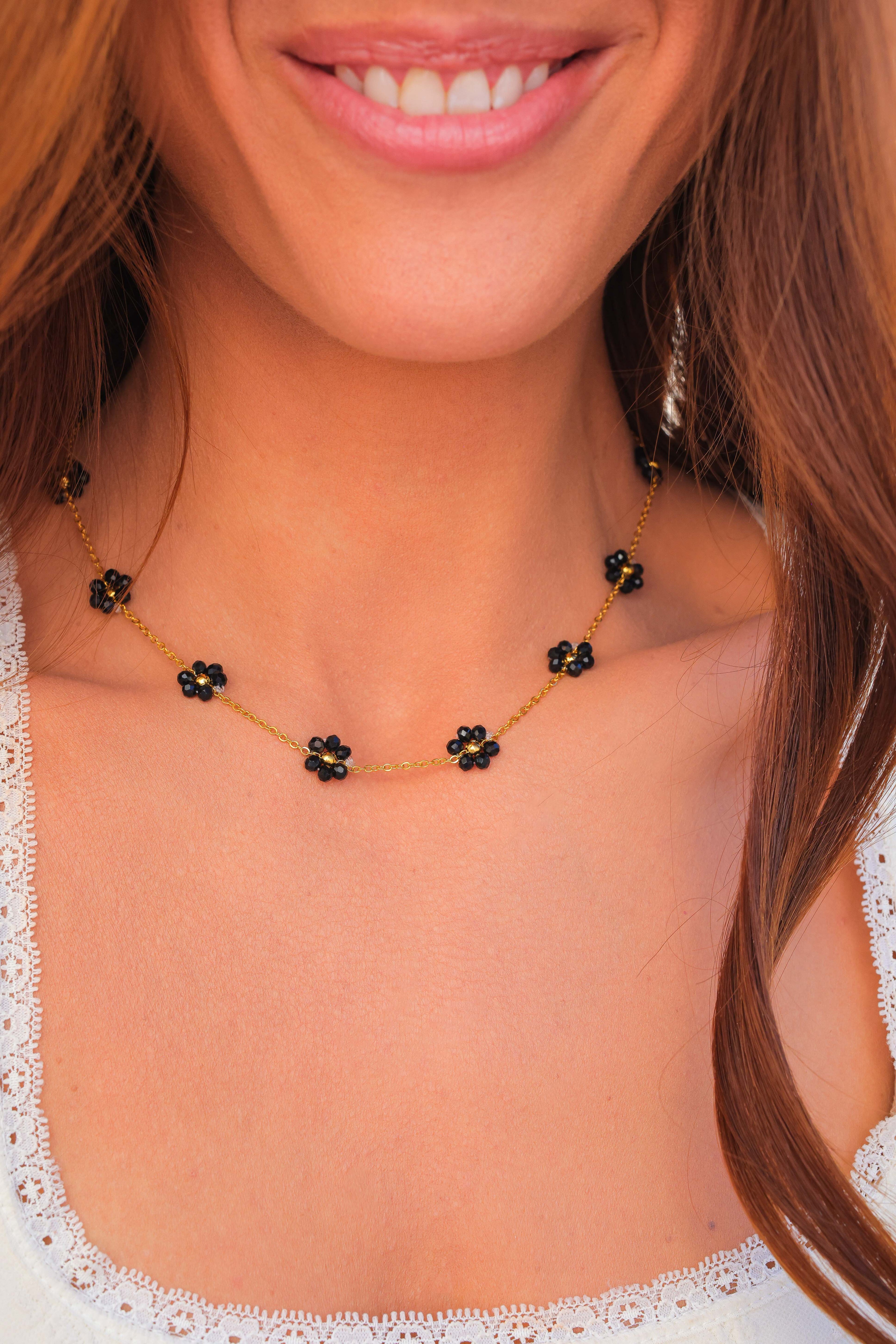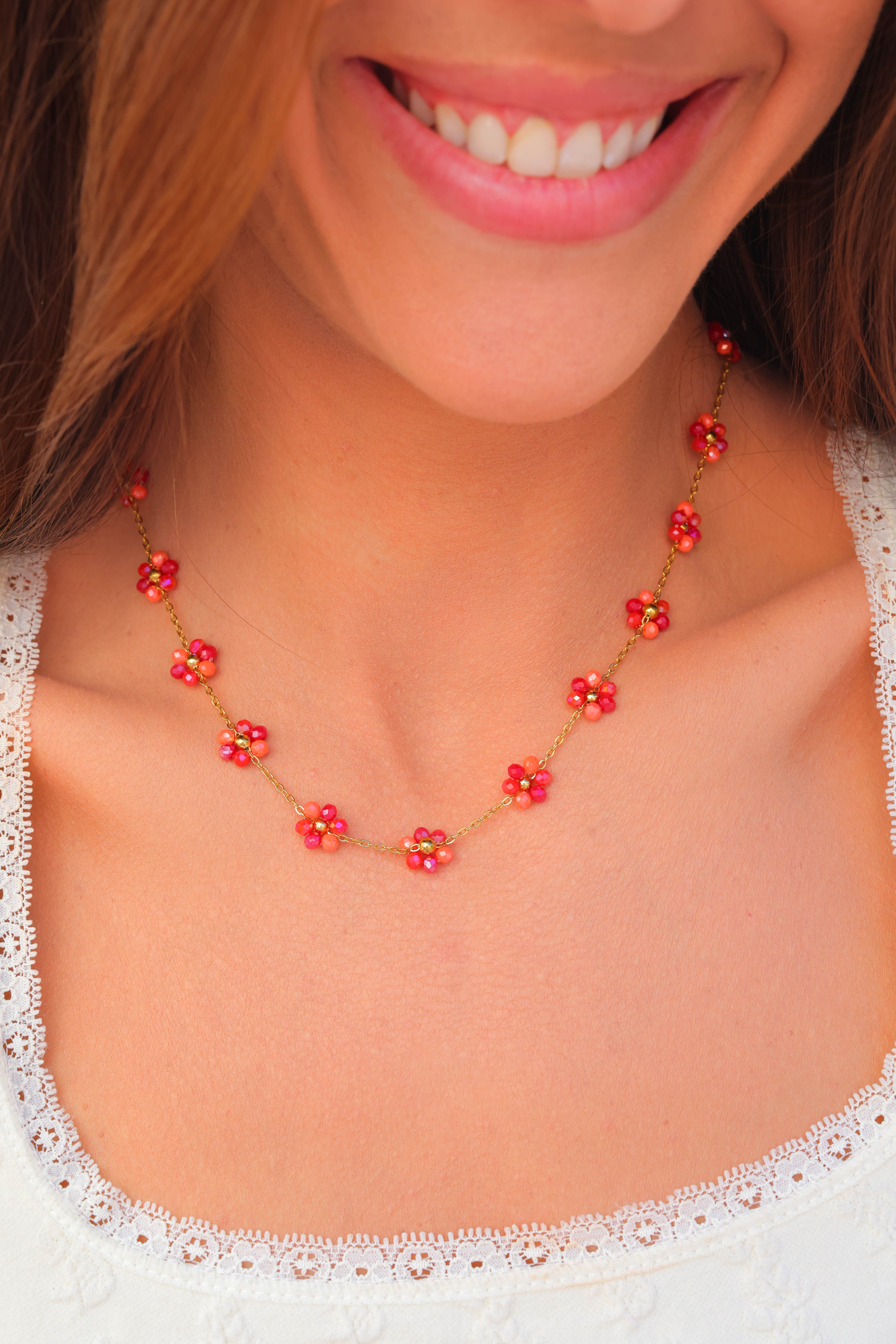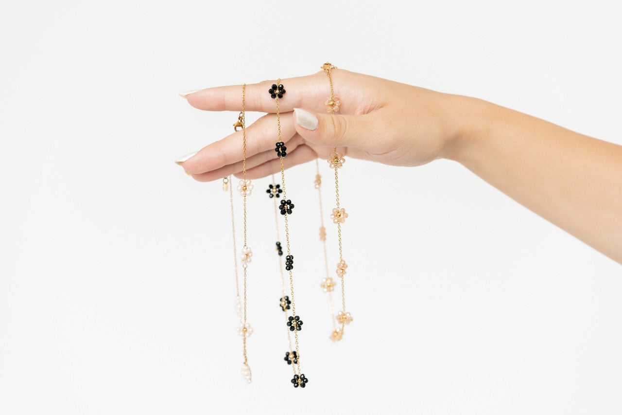 Other Variants: hand strung glass bead flowers cover the full necklace