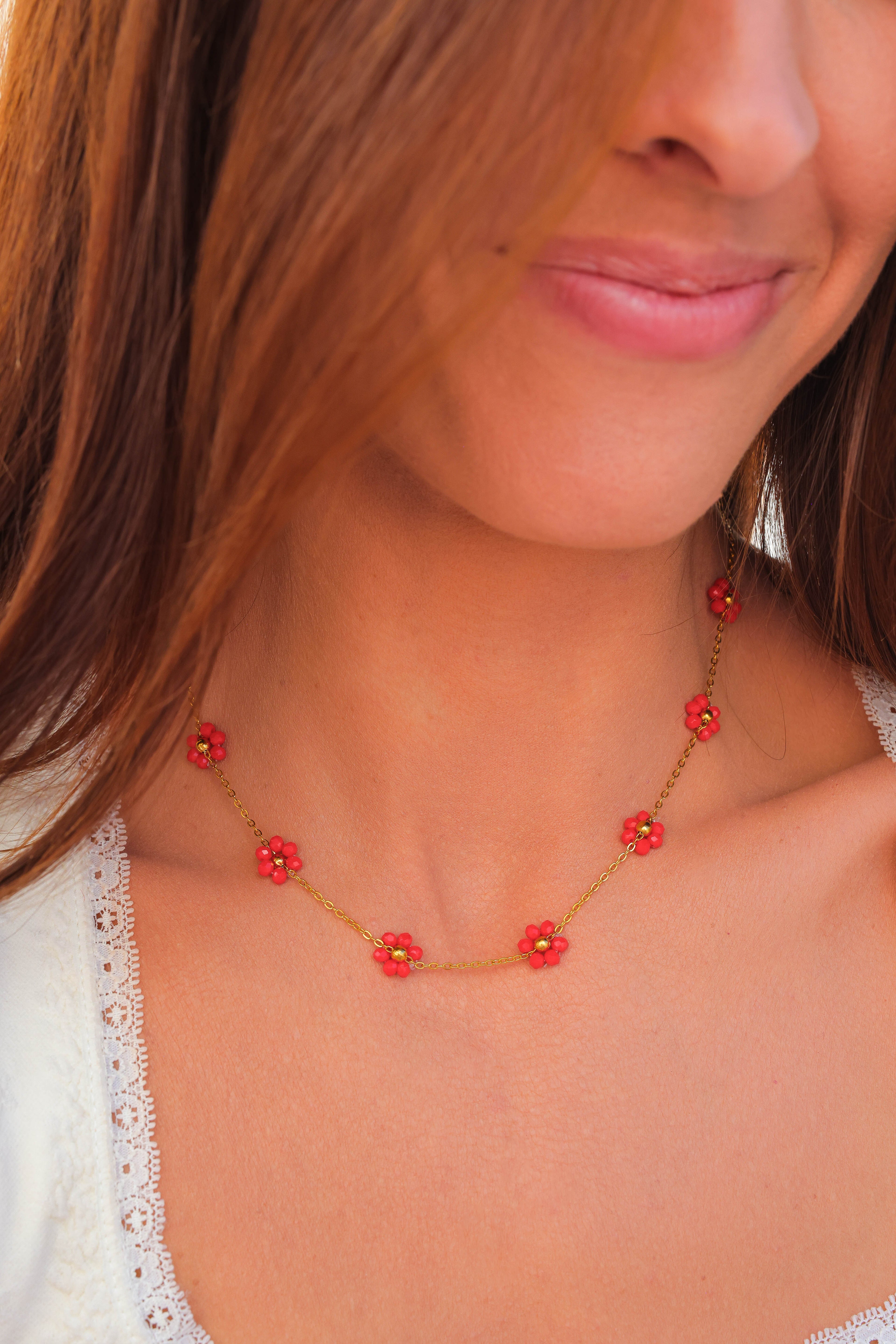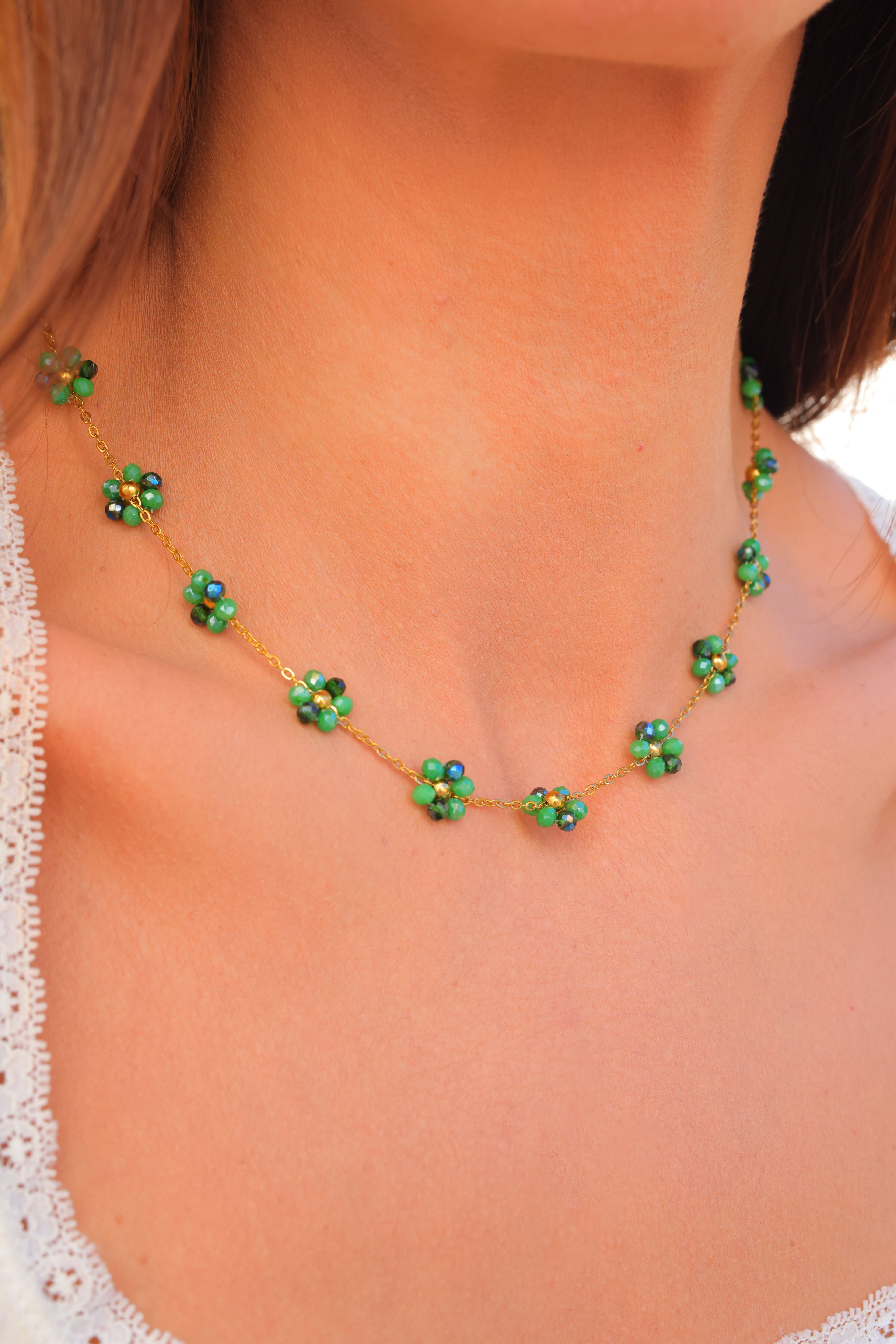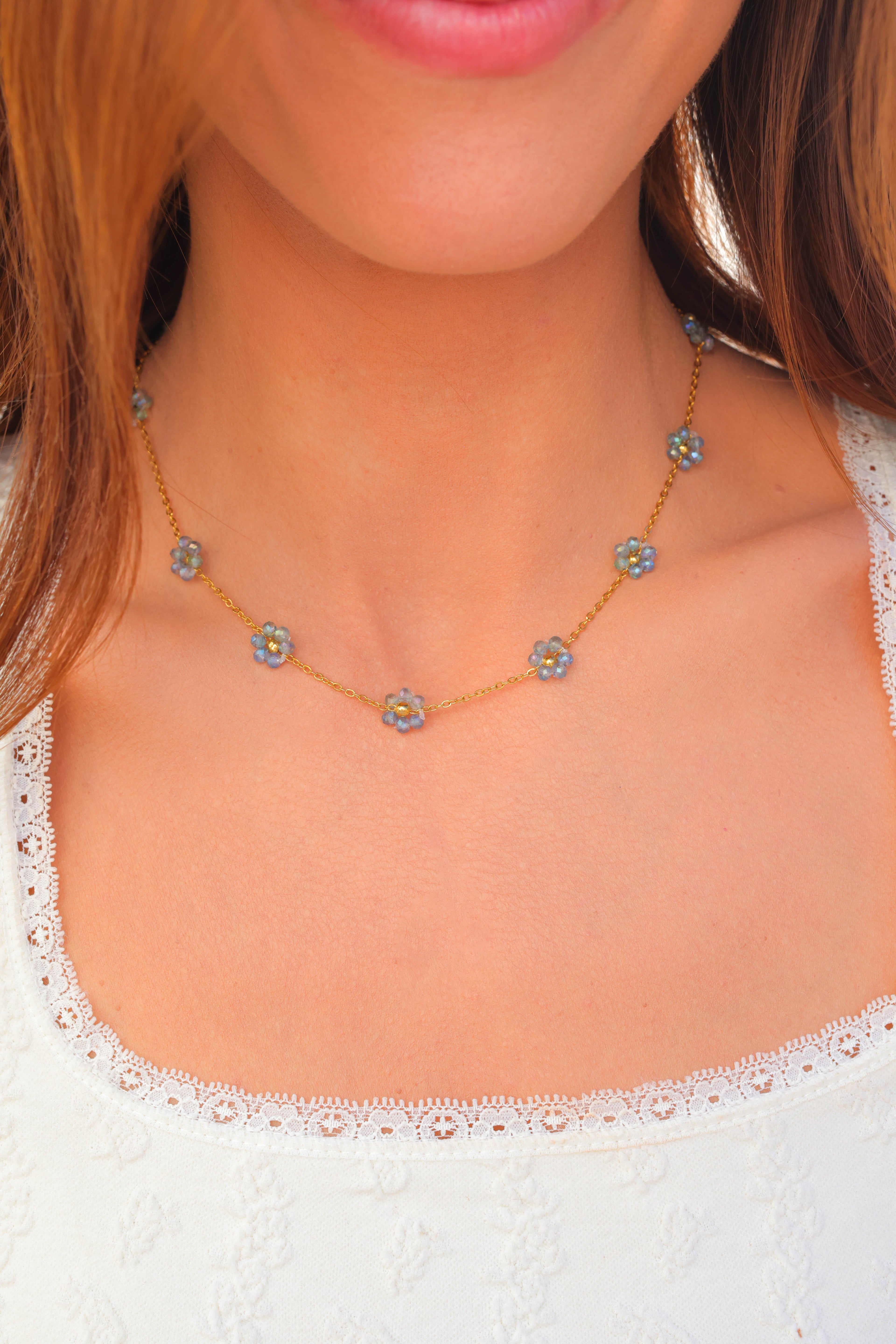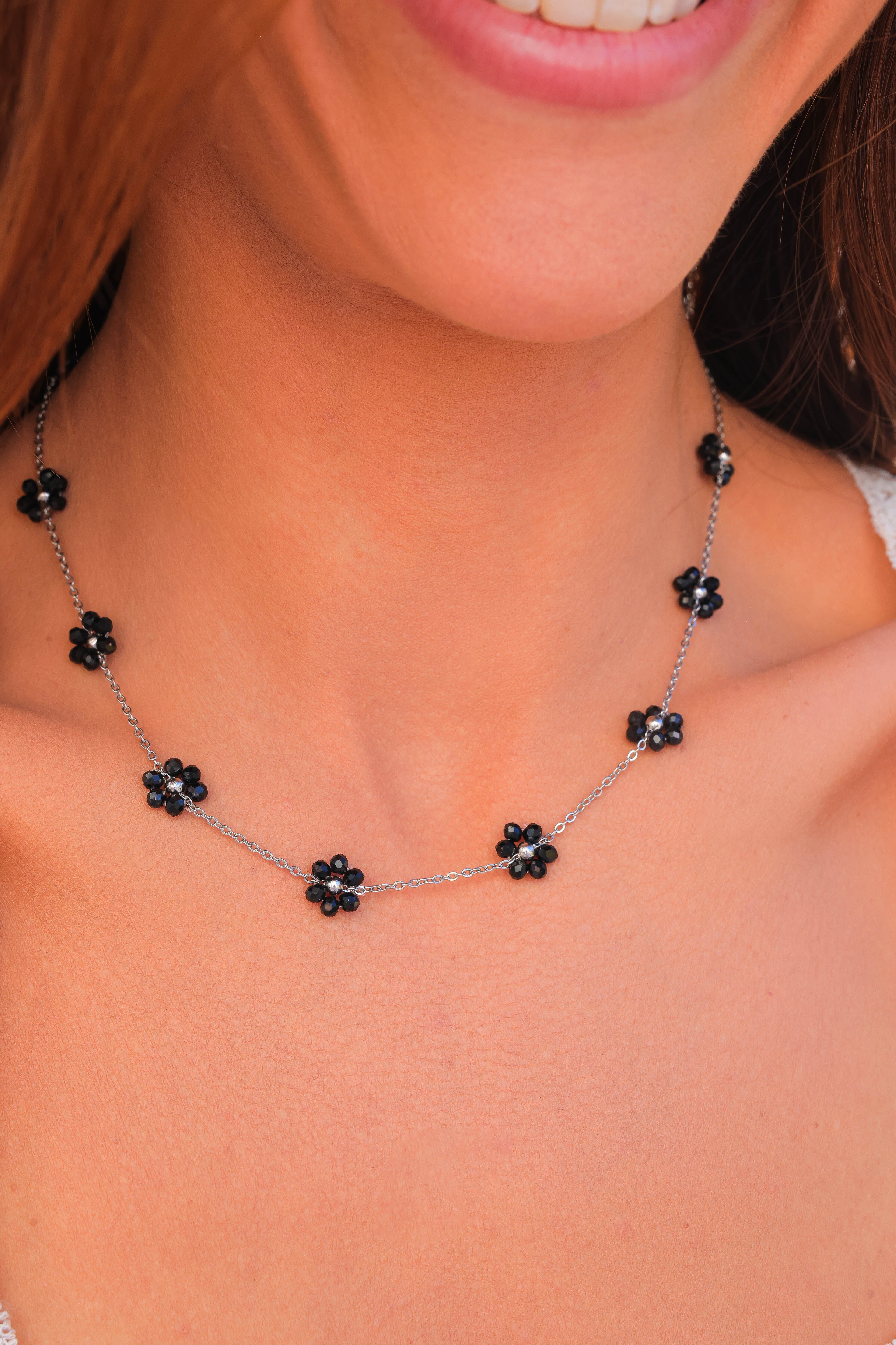 Other Variants: hand strung glass bead flowers cover the full necklace