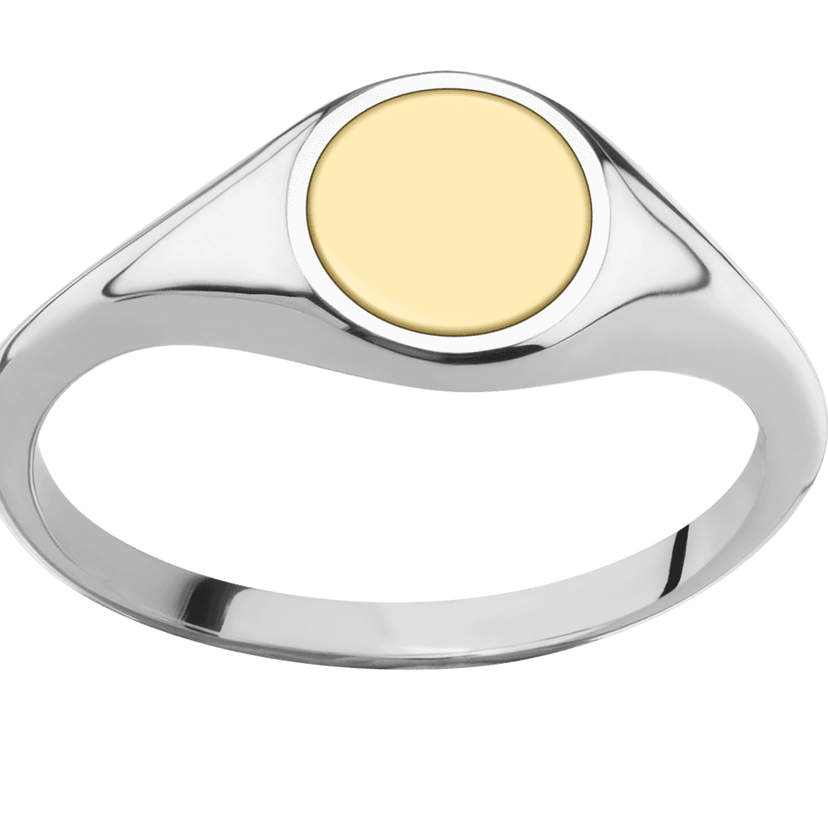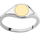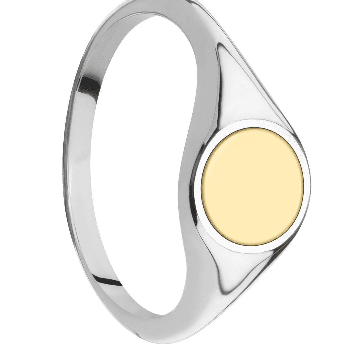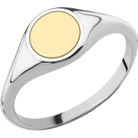 Small Circle signet ring (10mm) in 14K White Gold, with a Thin style band, a 14K Yellow Gold inlay.