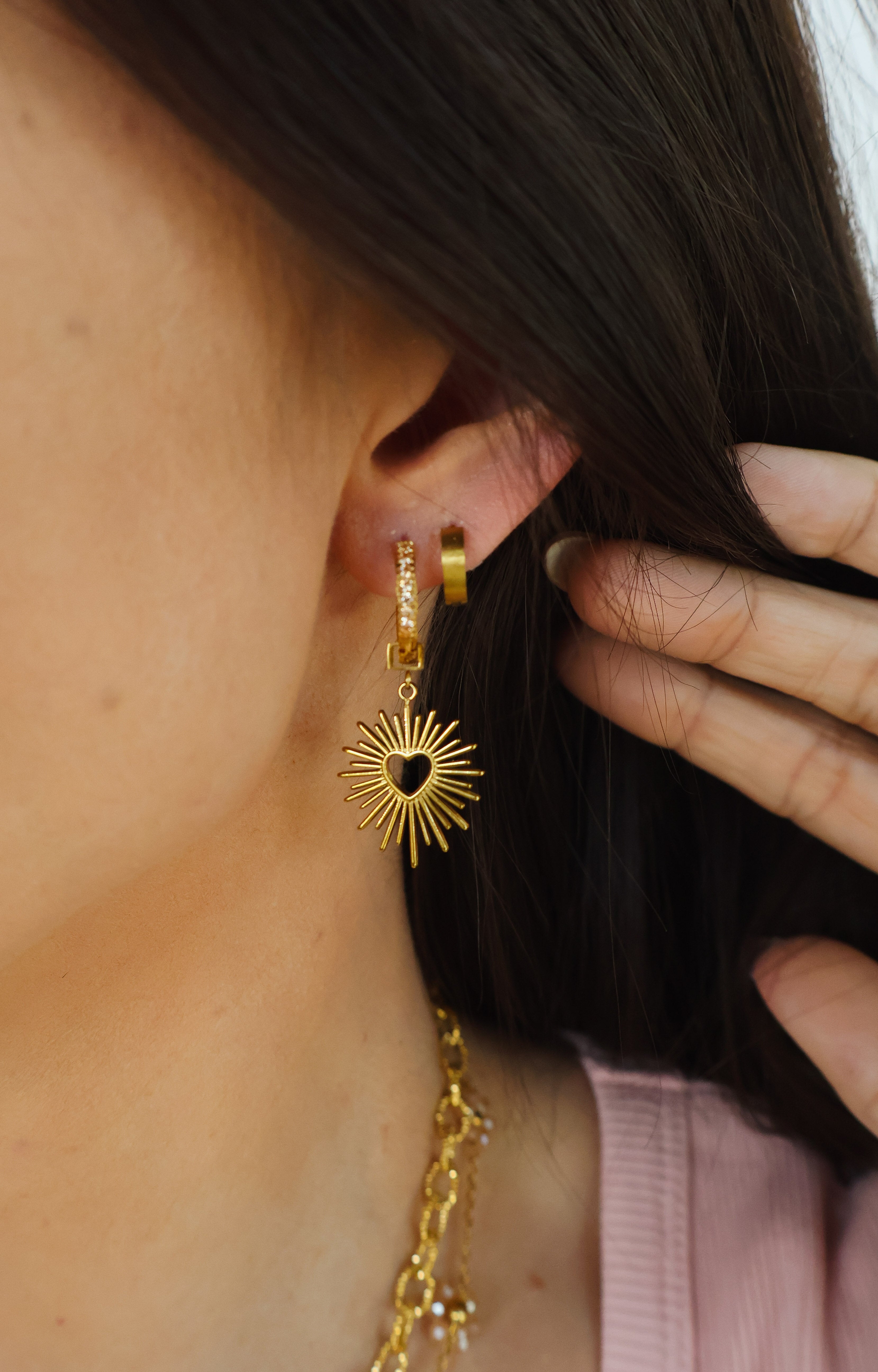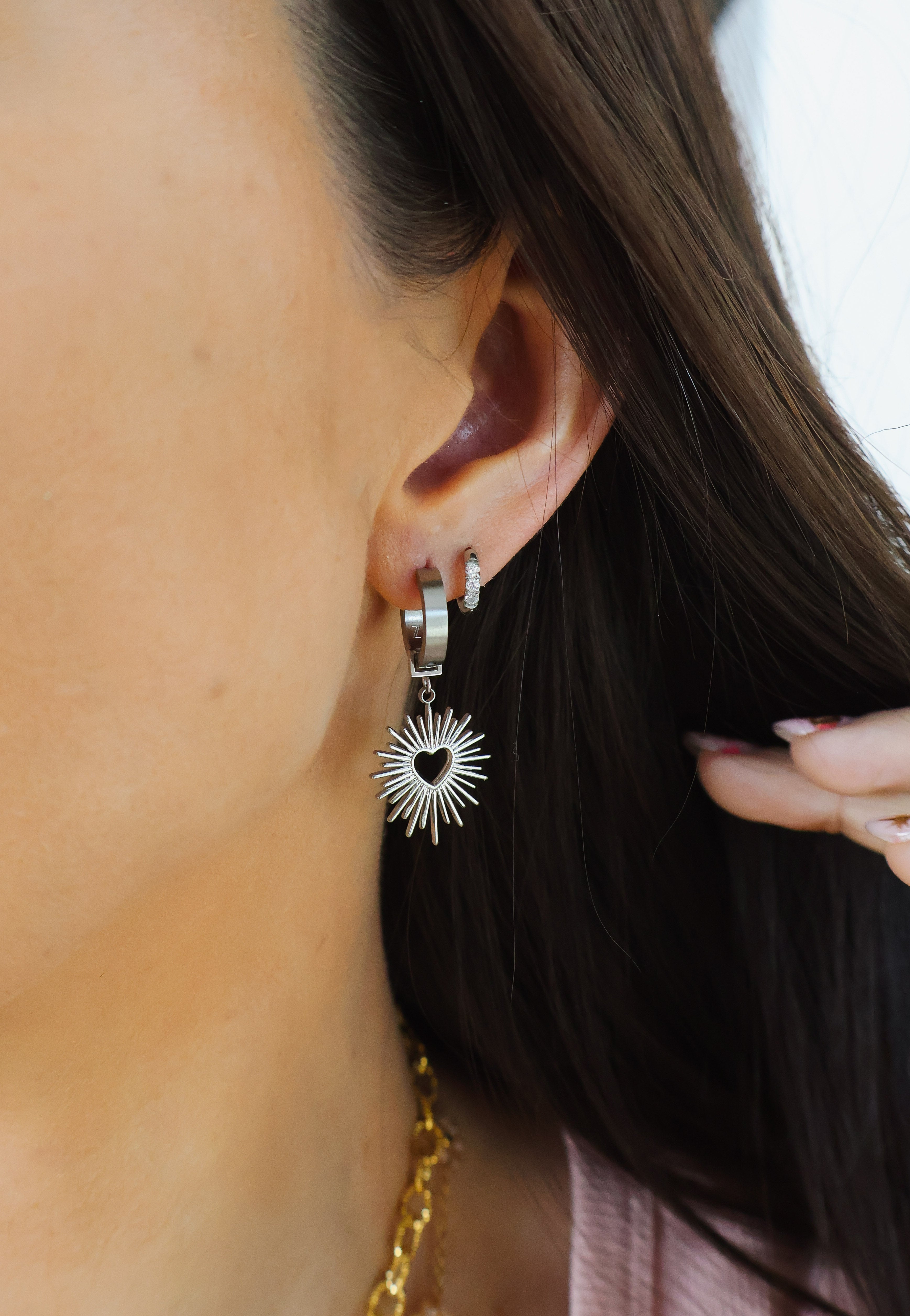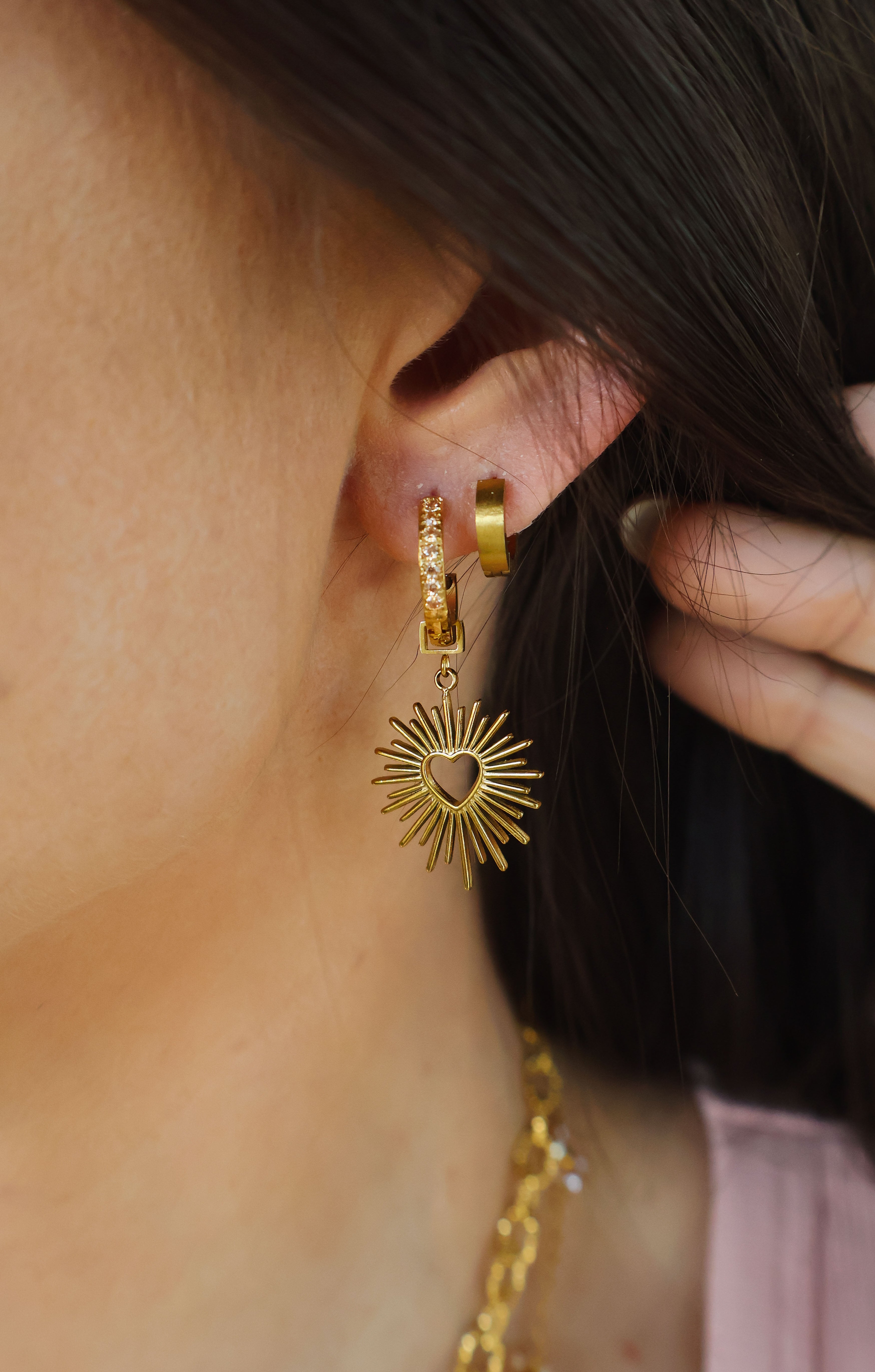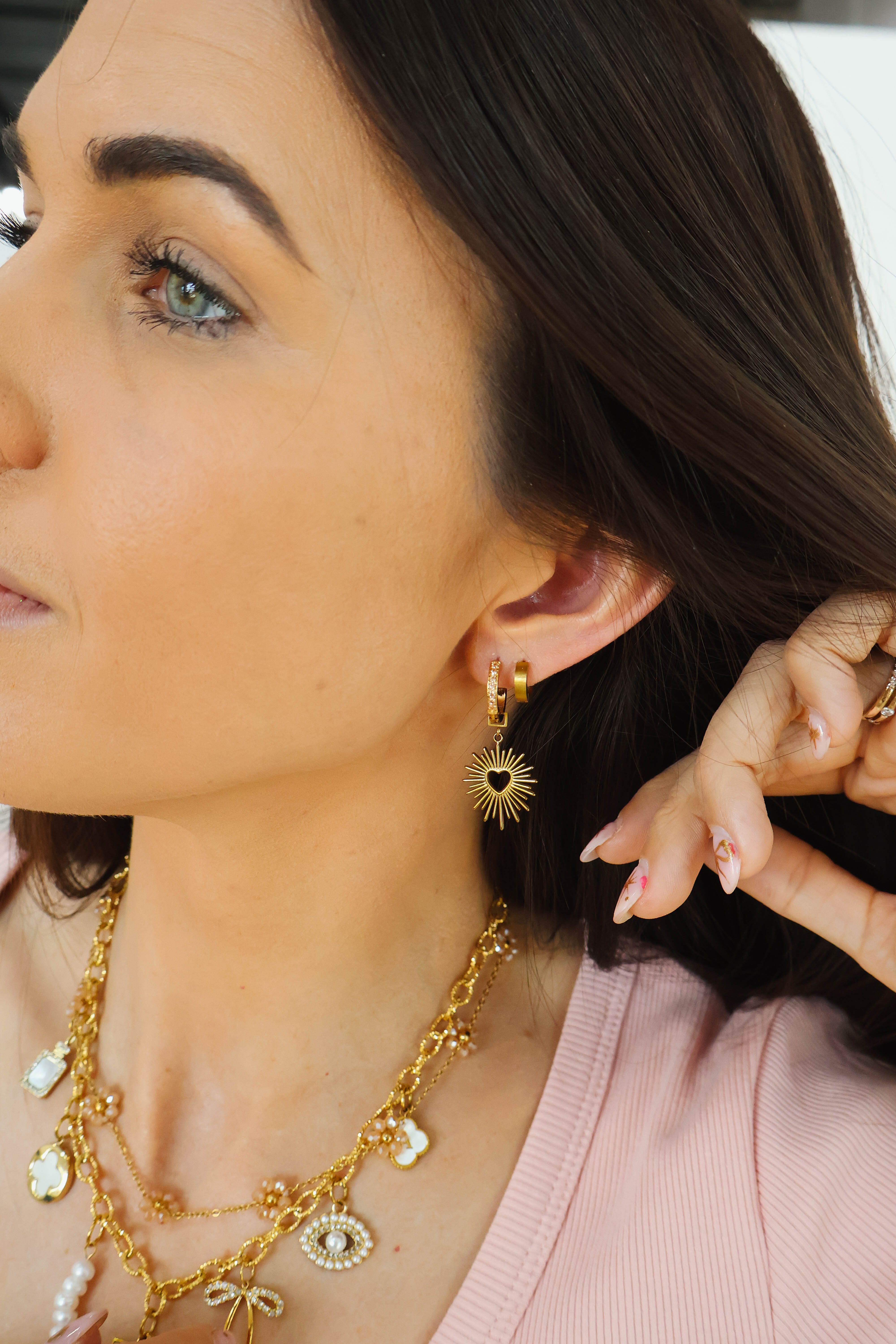 The changeable charms set allows you to express yourself daily through your jewelry. Paired with the Zaana Z Hoops, the removable, radiant, charm will help you own your unique shine and will effortlessly guide you through life, love, happiness, and to your next success, with your head up!