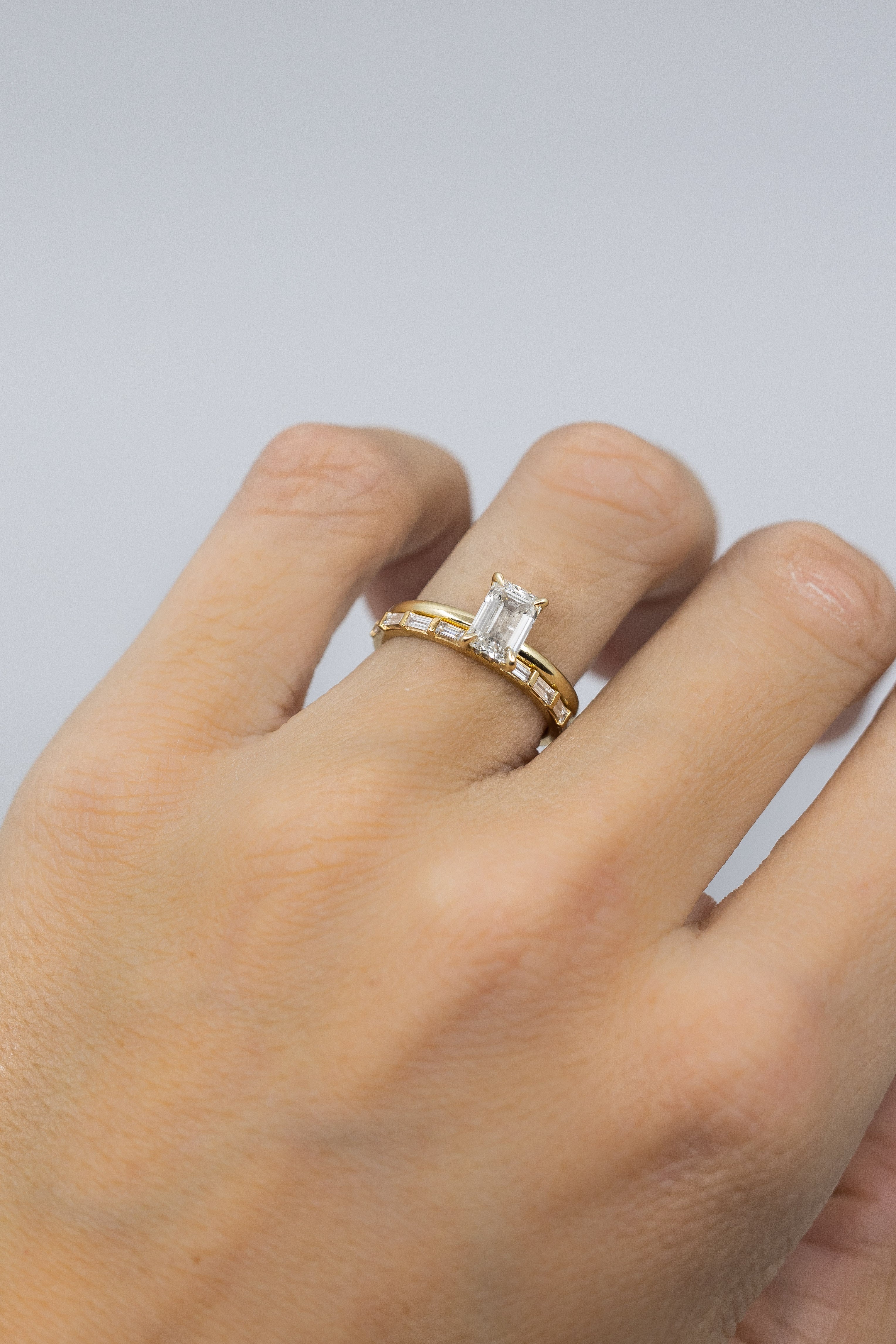 Emerald Solitaire with Hidden Halo + Anniversary Band Set - Ready To Ship