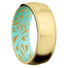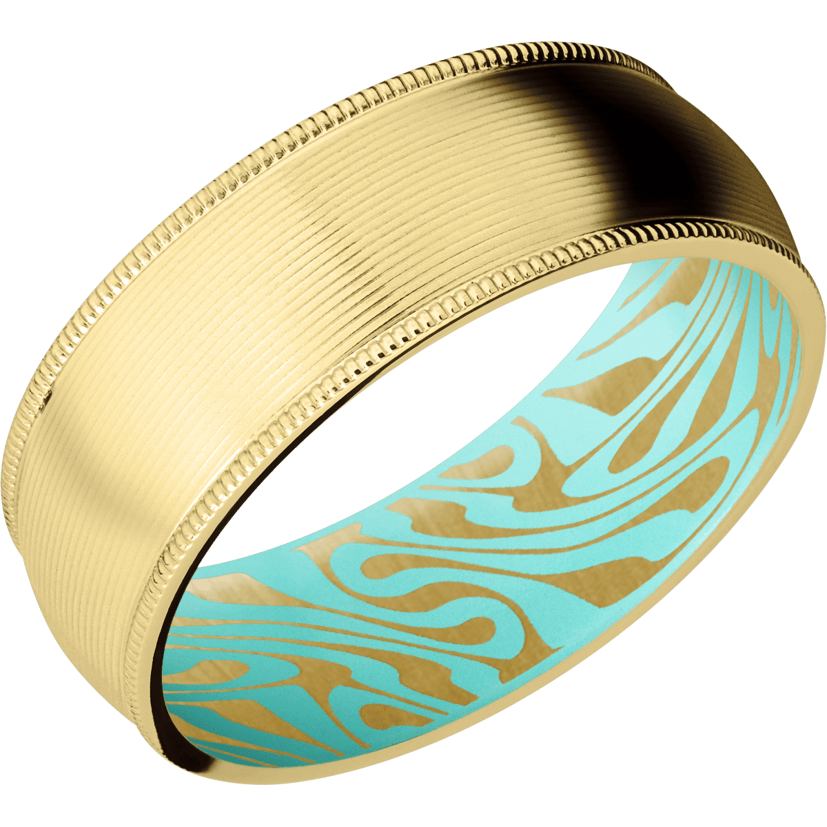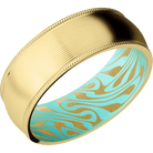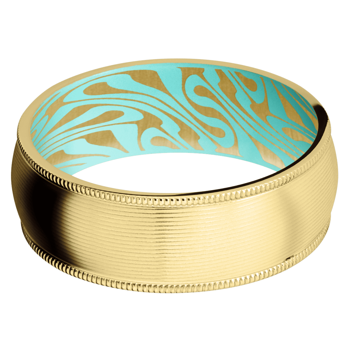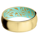 8 mm wide Domed Milgrain Edges 14K Yellow Gold band featuring a Robins Egg Blue sleeve.